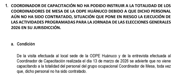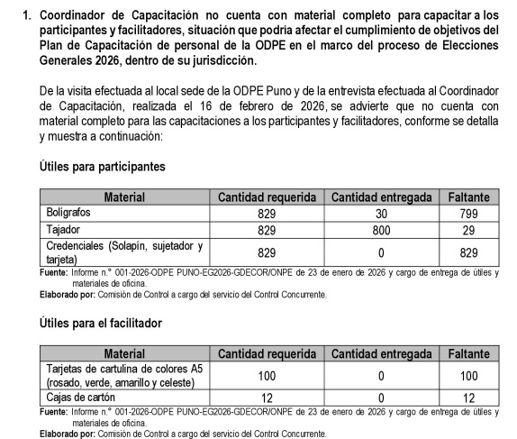 Sudaca pudo acceder a un documento de la Contraloría en el cual se advertía de una situación adversa relacionada con la capacitación del personal que trabajaría en las Oficinas Descentralizadas de Procesos Electorales (ODPE). Según se había programado, el personal de la ODPE de Puno debía llevar a cabo la capacitación de su personal la tercera semana de febrero.