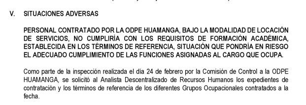 Estas irregularidades no sólo habrían ocurrido con los vehículos. En otro de los informes revisado por este medio se pudo encontrar que hasta habían contratado a personal que no cumplía con los requisitos establecidos como obligatorios para trabajar en una de las oficinas en Ayacucho.