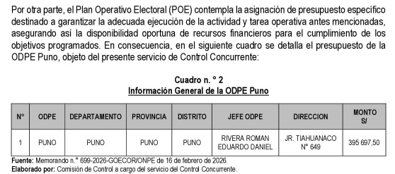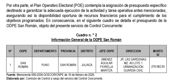Por supuesto, esta actividad sí estaba contemplada en la asignación de presupuesto para la Oficina Descentralizada de Procesos Electorales de Puno. Según se señala en el propio documento de Contraloría, se dispusieron cerca de cuatrocientos mil soles para la adquisición de materiales que no llegaron.