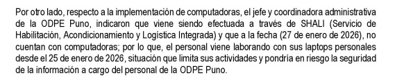 Otro informe de Contraloría sobre la Oficina Descentralizada de Procesos Electorales de Puno pone al descubierto que tampoco contaban con computadoras para sus labores y que, ante el trabajo que tenían pendiente, el personal de esta ODPE tenía que utilizar sus propias computadoras.