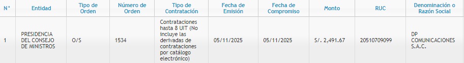 Una de estas es MyM Comunicaciones. Esta empresa trujillana recibió un pago por S/. 4,484 durante el mes de noviembre del año pasado por parte de la Presidencia del Consejo de Ministros. En sus redes sociales, esta empresa destaca su experiencia realizando campañas de prensa.