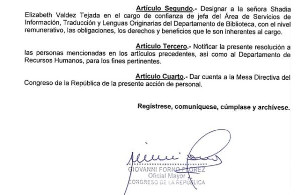 Lo extraño de esta designación es que colocó a Shadia Valdez, quien es abogada de profesión, en el cargo de jefa del Área de Servicio de Información, Traducción y Lenguas Originarias. No obstante, su llegada al Legislativo arrastraba una historia todavía más interesante y que involucra a una de las bancadas.