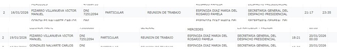 Pero Gonzáles Nalvarte no acudió sólo a las visitas al despacho presidencial. Los registros muestran que, esos mismos días y durante el mismo lapso de tiempo, Víctor Manuel Pizarro Villanueva también estuvo presente en estas reuniones que se extendieron hasta altas horas de la noche.