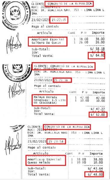 No conforme con ello, al día siguiente, Condori vuelve a consumir un almuerzo de tres platos que costó más de 130 soles. El medio da cuenta que este tipo de gastos por parte de la asesora de Esdras Medina eran algo usual y tenía varias facturas por la compra de un pollo a la brasa entero, pizzas y varios platos marinos. Por supuesto, todas estas facturas las ponía a nombre del Congreso.