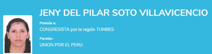 Este bloque con reciente pasado izquierdista que podría formar parte de la bancada de Renovación Popular en el Congreso también incluye a Jeny Del Pilar Soto Villavicencio como candidata al Legislativo por la región Tumbes. Su pasado, más precisamente en las elecciones del 2021, estuvo vinculado con lo que es catalogado con el sector más radical de la izquierda.