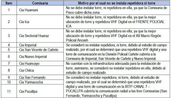 Pese a que este proyecto ha involucrado un millonario préstamo con el Banco Interamericano de Desarrollo (BID) y sólo cuarenta comisarías se podrían ver beneficiadas, en la lista que se entregó se incluyeron once de estos establecimientos policiales en los cuales era innecesario que se instalen estas antenas repetidoras debido a que ya contaban con las facilidades necesarias para este tipo de comunicación.