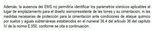 El estudio de mecánica de suelos que no fue incluido no sólo representaba una infracción al Reglamento Nacional de Edificaciones sino que impedía que las antenas que se iban a instalar estén preparadas para afrontar un sismo.
