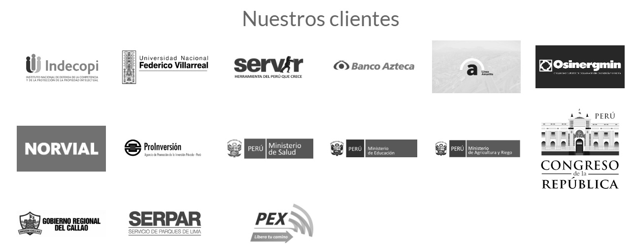 Si bien la descripción de los servicios que ofrece esta empresa invita a creer que quienes más requerirían de sus servicios son quienes integran el sector privado, en la lista de sus clientes destacados figuran tres ministerios, un organismo de la Municipalidad de Lima, el Gobierno Regional del Callao y hasta el Congreso de la República, quienes en el mes de abril pagaron S/. 26,900 para que esta empresa se encargue de las invitaciones para “presentar expresiones de interés para los procedimientos” relacionados con la implementación de la bicameralidad.