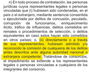 Es importante tener en cuenta que contratar con la empresa de un sentenciado por corrupción no solamente puede ser cuestionable desde una perspectiva moral sino que la Ley de Contrataciones del Estado, más precisamente en el artículo once, indica que si las empresas tienen personas vinculadas que fueron condenadas por corrupción están impedidas de contratar.