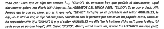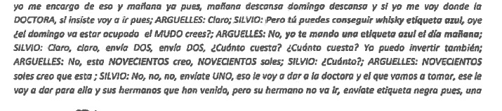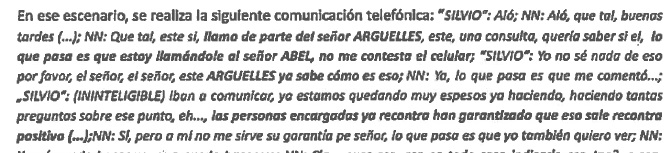 En medio del proceso que involucraba a Abel Cruz Mosqueira Ortiz, el encargado de conseguir las firmas para el proceso de venta fraudulento, se produjo la siguiente comunicación en la cual Silvio Muñoz, identificado como persona de confianza de Aniceto Argüelles, asegura que “las personas encargadas” le han garantizado que “eso sale recontra positivo”.